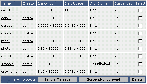 You may suspend/unsuspend Users by placing a check next to the User, then clicking the "Suspend/Unsuspend" button.
